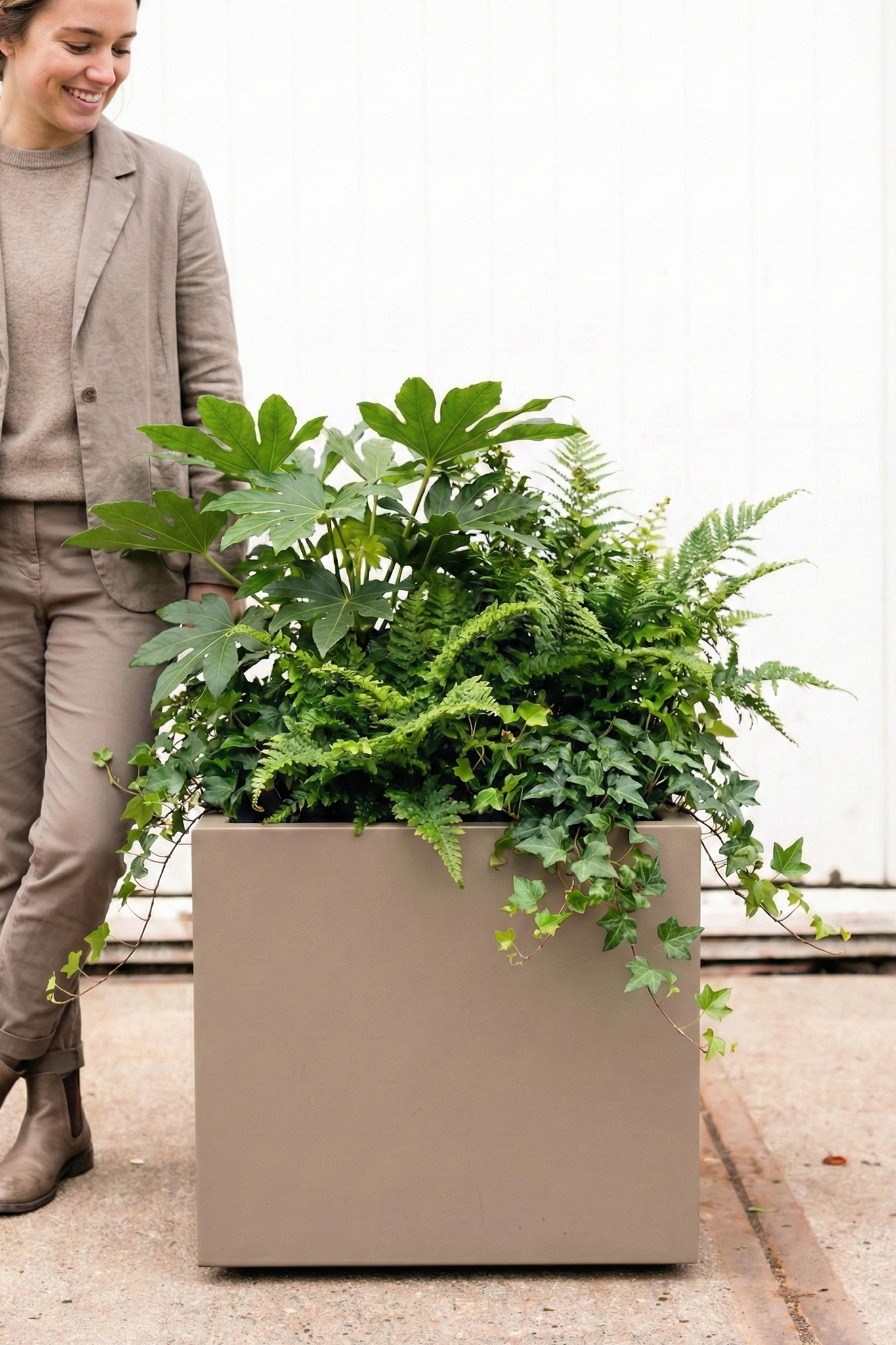 Wij leveren de plantenbak volledig gevuld én afgestemd op het seizoen. Onze groenspecialisten stellen unieke combinaties samen op basis van trends, kleur en bloeiperiode.
