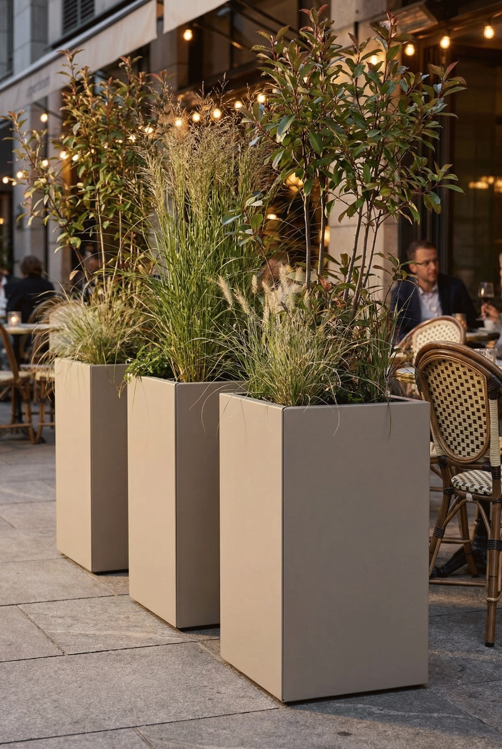De BLOCK 90 is boom-proof en gebouwd voor maximale groenimpact. Door de hoogte en het grote wortelvolume is deze plantenbak perfect voor meerstammige bomen en grote planten die ruimte nodig hebben om langdurig gezond te blijven. De strakke vorm houdt het geheel architectonisch en overzichtelijk — ideaal voor pleinen, daktuinen en grote terrassen waar groen mag domineren.