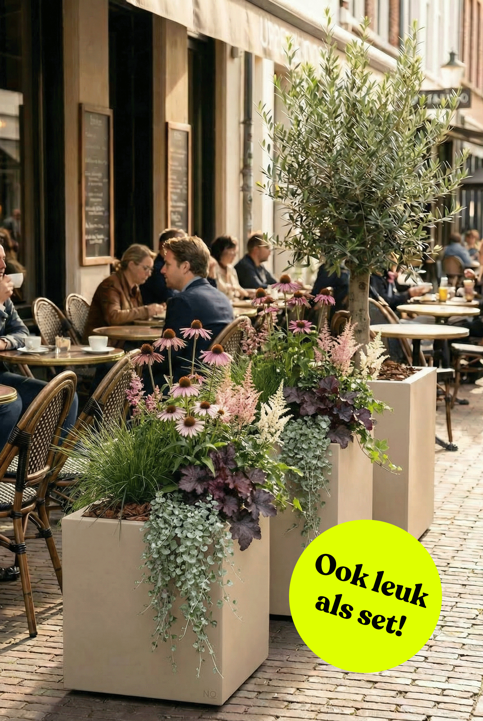 Extra hoge plantenbak voor maximale impact, volume en groenbeleving.