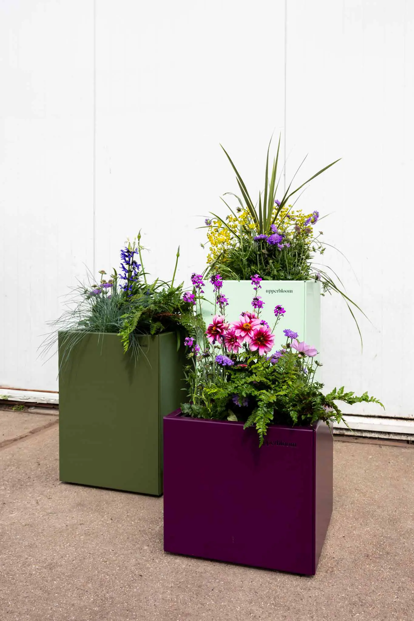 De Cube Trio Set in RAL kleur is dé keuze voor wie een krachtig lijnenspel wil combineren met flexibiliteit in hoogte. Met drie verschillende formaten – van laag tot extra hoog – creëer je eenvoudig structuur, balans en beleving op terrassen, entrees of patio’s. De plantenbakken zijn gemaakt van verzinkt staal en afgewerkt met een hoogwaardige poedercoating in elke gewenste RAL-kleur. Dankzij de slimme binnenbakken met waterreservoir is onderhoud minimaal.
