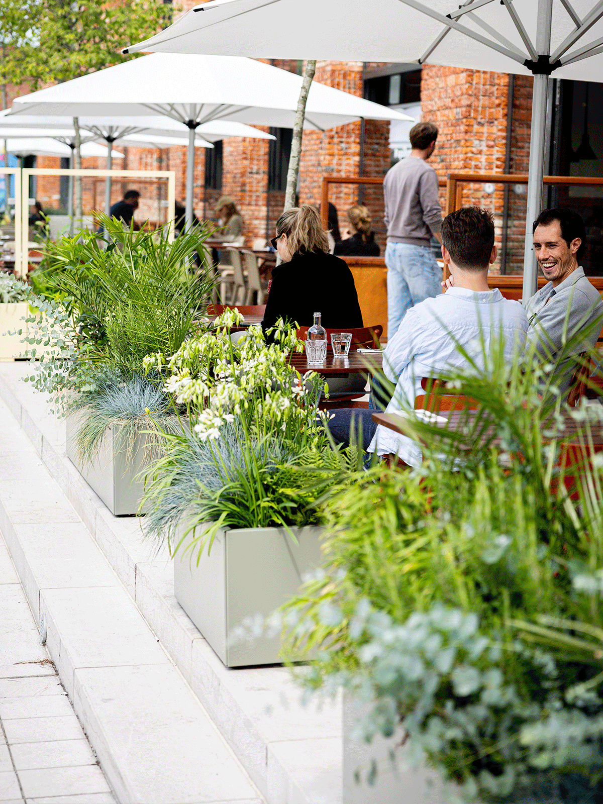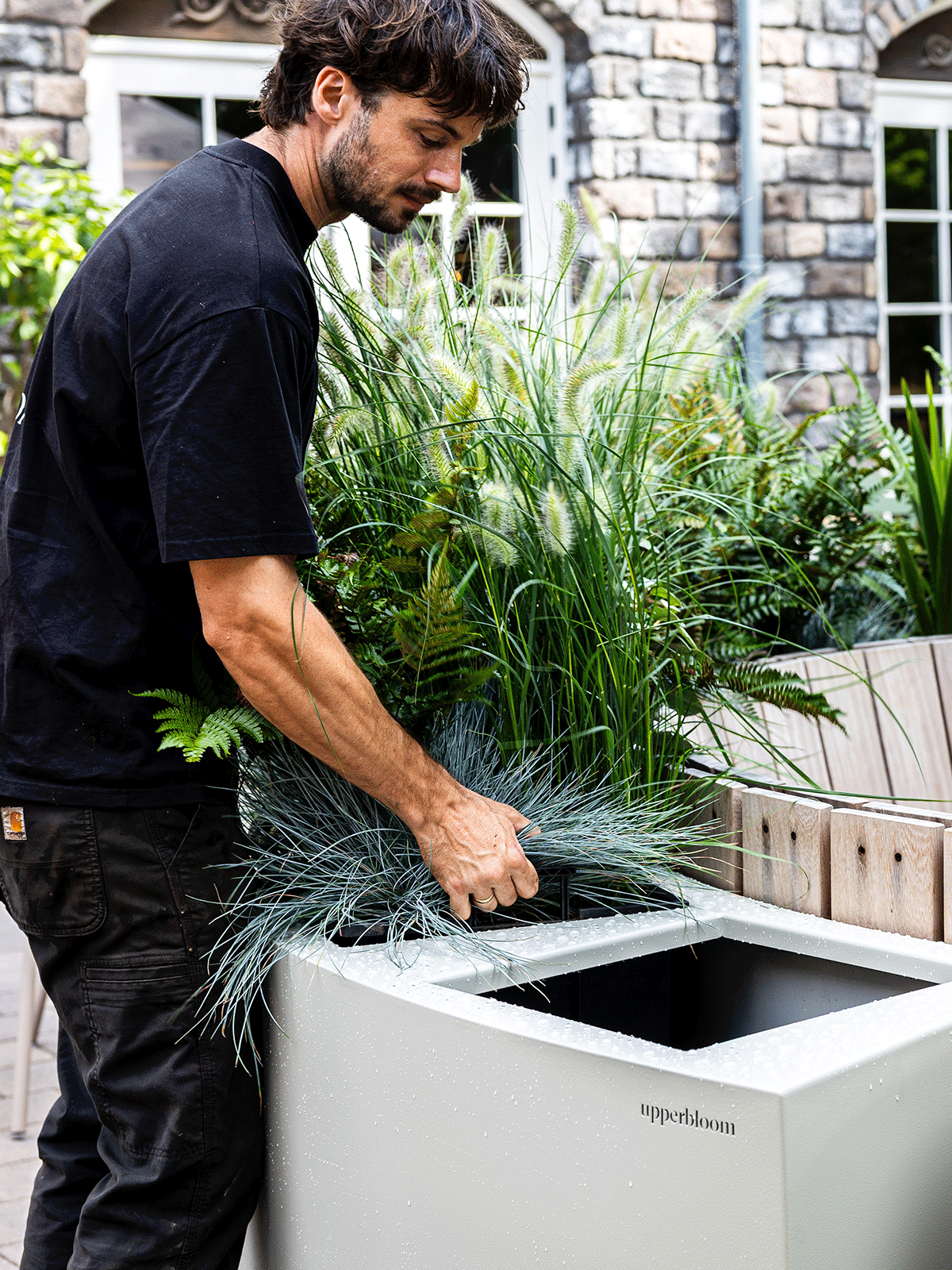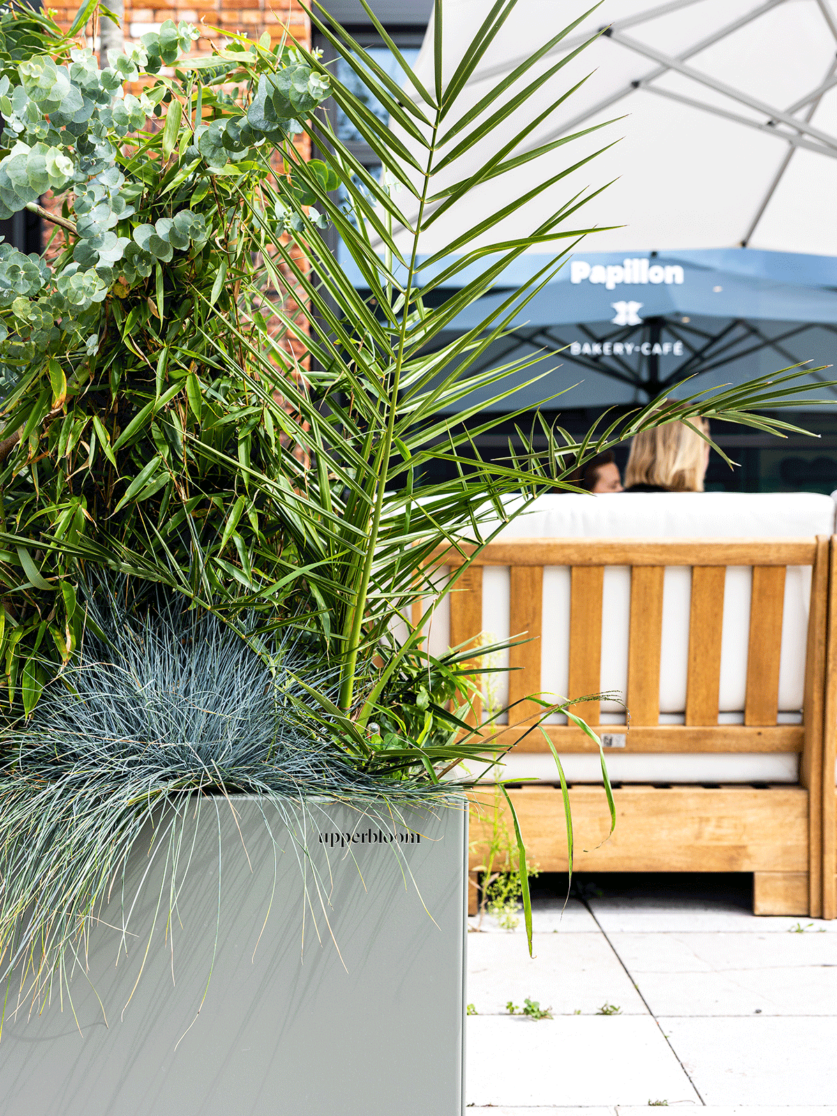 Wij leveren de plantenbak volledig gevuld én afgestemd op het seizoen. Onze groenspecialisten stellen unieke combinaties samen op basis van trends, kleur en bloeiperiode.