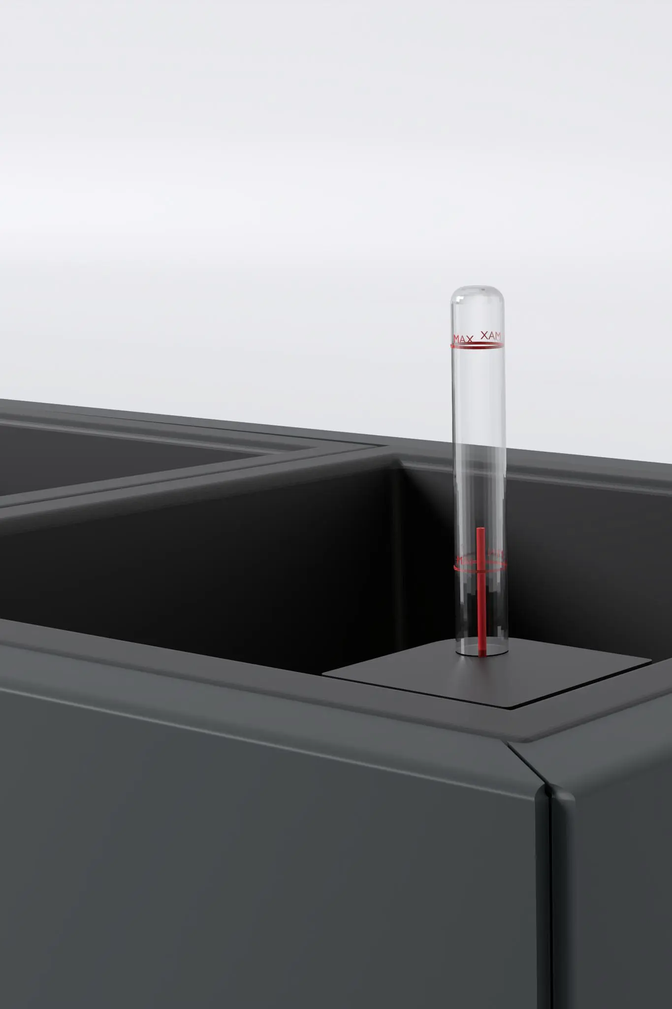 Drie verwisselbare binnenbakken met waterreservoirs zorgen voor flexibel groen dat weinig onderhoud vraagt.