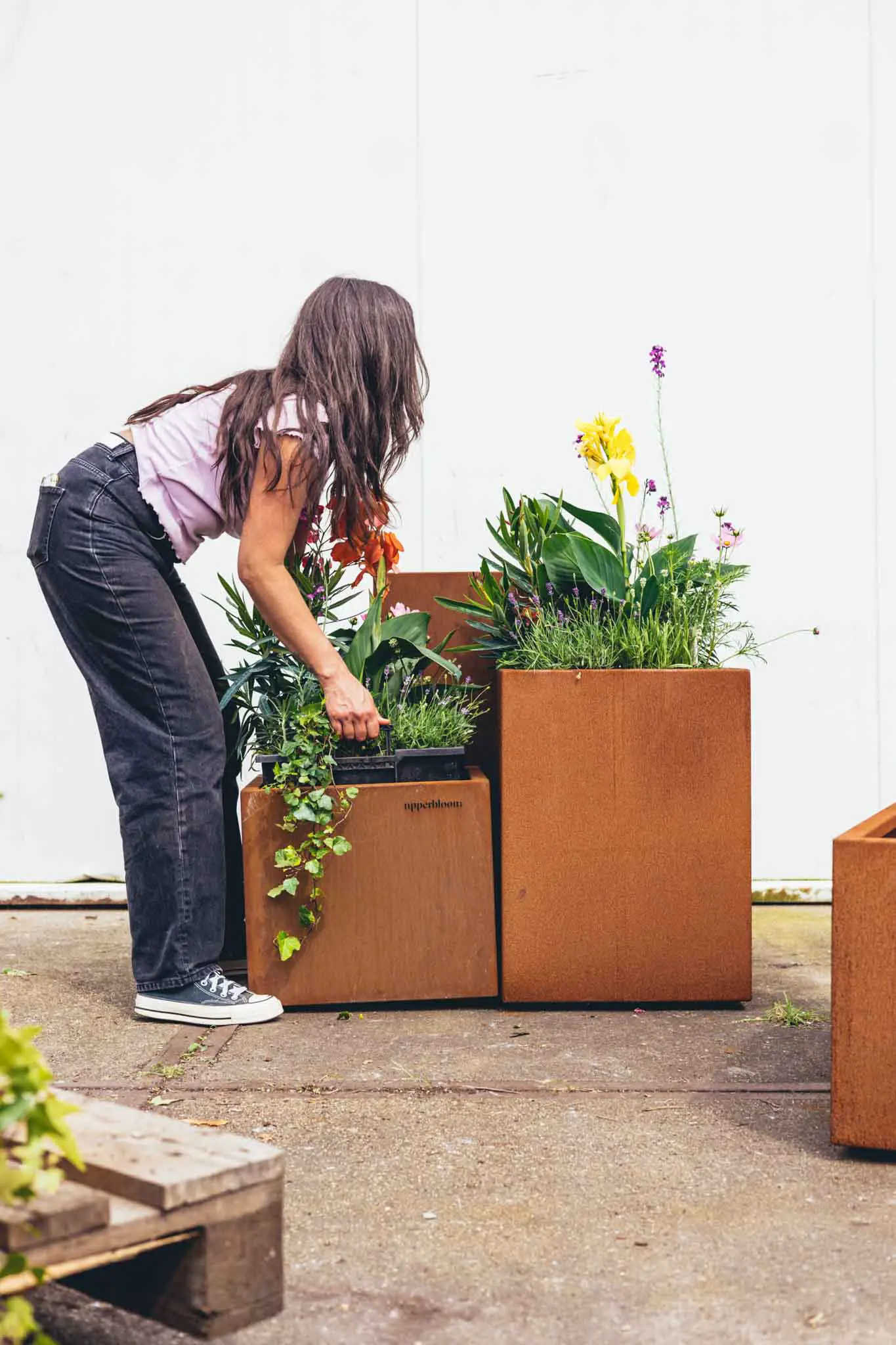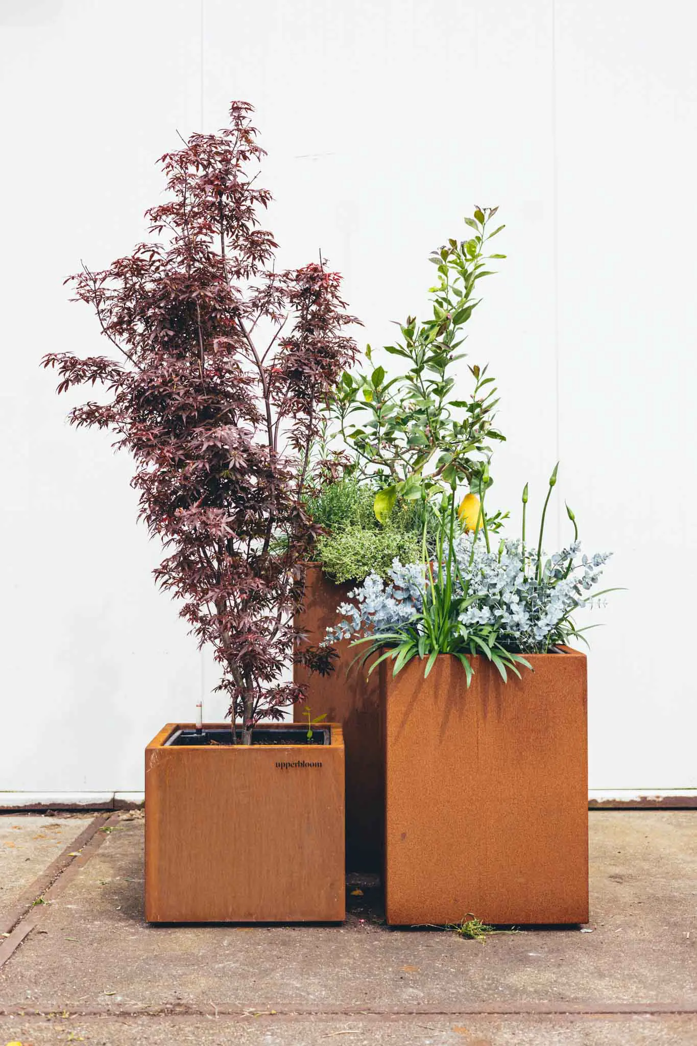 De Cube 40 van Upperbloom is de kleinste in de Cube-serie, maar laat zich groots zien. Met zijn vierkante formaat van 44 × 44 cm en een hoogte van 40 cm, is deze plantenbak ideaal voor kleinere terrassen, entrees of als onderdeel van een groene opstelling.